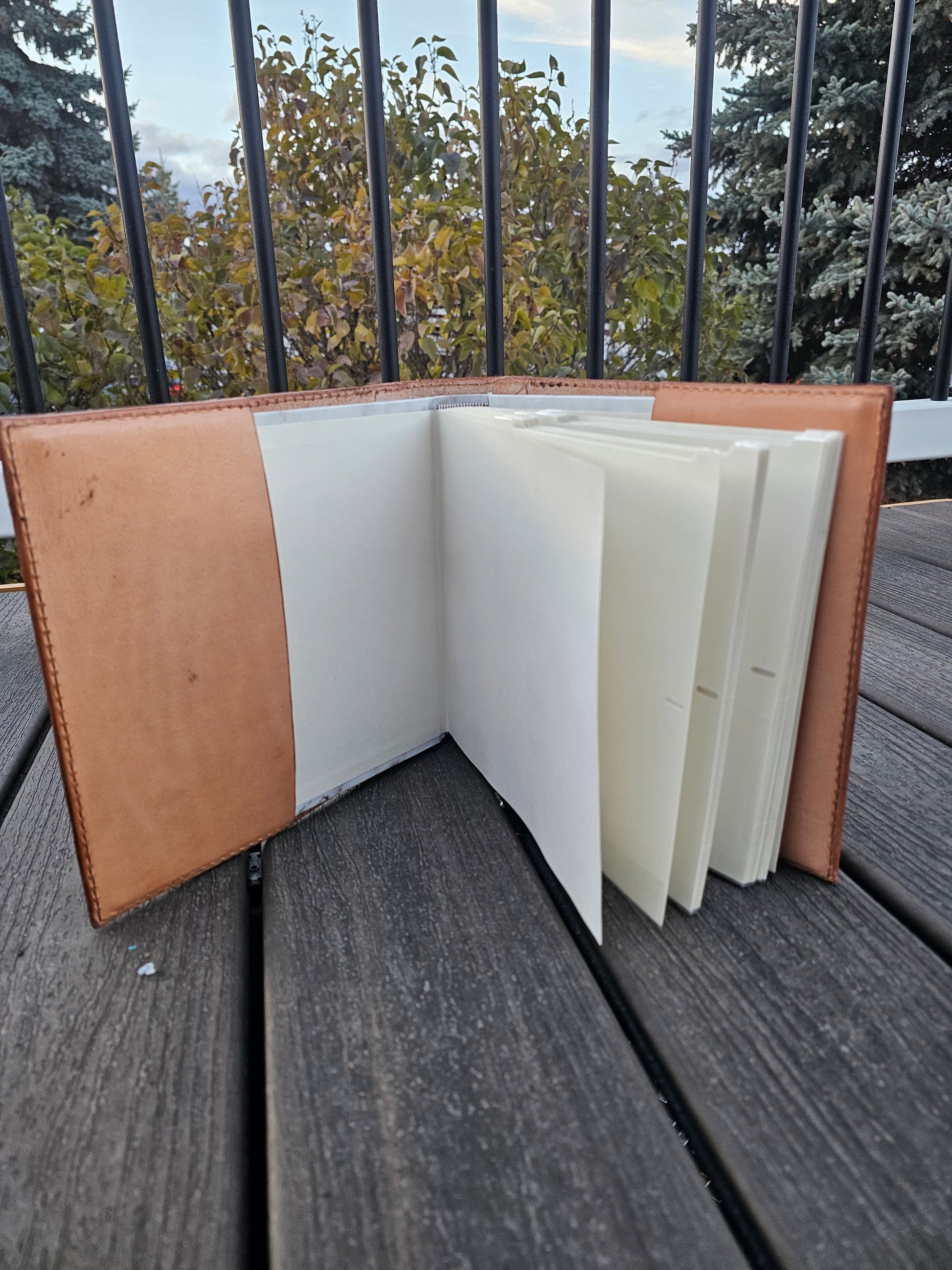Hand tooled leather photo album to keep all of your favorite memories in. Tooling done by Double Arrow Saddlery.